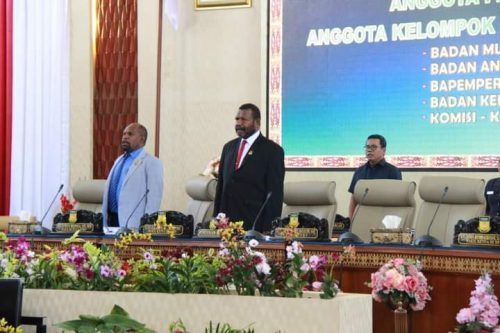 [vc_row][vc_column][vc_column_text]Papua – DPRD Provinsi Papua gelar Rapat Paripurna dalam rangka penetapan pendistribusian Anggota Fraksi dan Kelompok Khusus ke dalam Badan Musyawarah, Badan Anggaran, Bapemperda, Badan Kehormatan dan Komisi, Selasa, (25/10/2022). Rapat Paripurna ini dipimpin oleh Wakil Ketua I, DR. Yunus Wonda, SH, MH didampingi Wakil Ketua II Edoardus Kaize, SS dan Wakil Ketua III, Yulianus Rumbairusy, S.Sos., MM. Rapat paripurna dihadiri oleh 47 Anggota DPRD Provinsi papua.