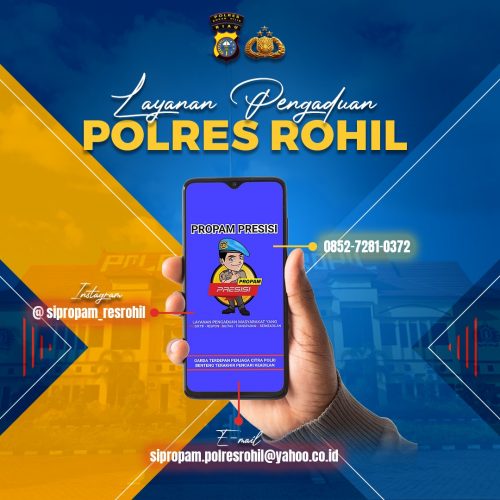Dalam layanan pengaduan tersebut, Polres Rokan Hilir melampirkan Akun ig: @sipropam_resrohil , email : sipropam.polresrohil@yahoo.co.id , nomor handphone dumas/pengaduan polres : 085272810372.
