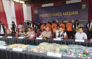 Mereka sudah 2 kali mendistribusikan narkoba ke berbagai wilayah di Sumatera Utara seperti Medan, Labuhanbatu dan kota-kota lainnya dengan upah, Rp 4 juta perkilo sabu,” ungkap Kapolrestabes Medan, Kombes Pol Gidion Arif Setyawan didampingi Wakapolrestabes AKBP, Rudi Silaen dan Kasat Narkoba, AKBP Thommy Aruan rilis pengungkapan kasus sekaligus pemusnahan narkoba, Kamis (7/8/2025).