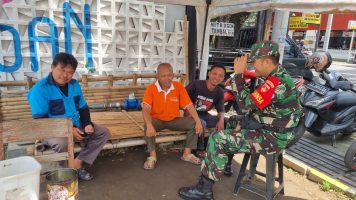 Surakarta – Dalam upaya mempererat hubungan dengan masyarakat, Babinsa Kelurahan Tipes, Serka Sarmin dan Serka Anjasmoro dari Koramil 03/Serengan Kodim 0735/Surakarta melaksanakan kegiatan komunikasi sosial (Komsos) dan himbauan kepada petugas parkir Bapak R. Yanto Gacoan di Jl. Veteran No.258, Kelurahan Tipes, Kecamatan Serengan, Kota Surakarta, pada Kamis (16/10/2025) pukul 09.30 WIB.