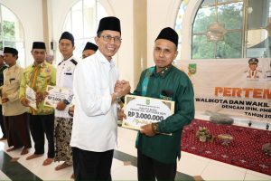 Batam – Wali Kota Batam, Amsakar Achmad, menyerahkan secara simbolis insentif bagi tokoh agama yang tergabung dalam Ikatan Persaudaraan Imam Masjid (IPIM), Persatuan Mubaligh Batam (PMB), dan Badan Musyawarah Guru Al-Qur’an (BMGQ) periode III tahun 2025.